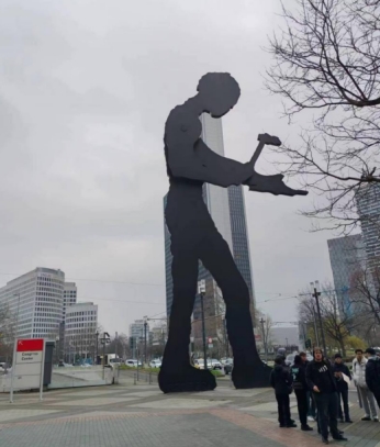 展馆外的雕塑:展示一百多年前法兰克福是个制造业城市