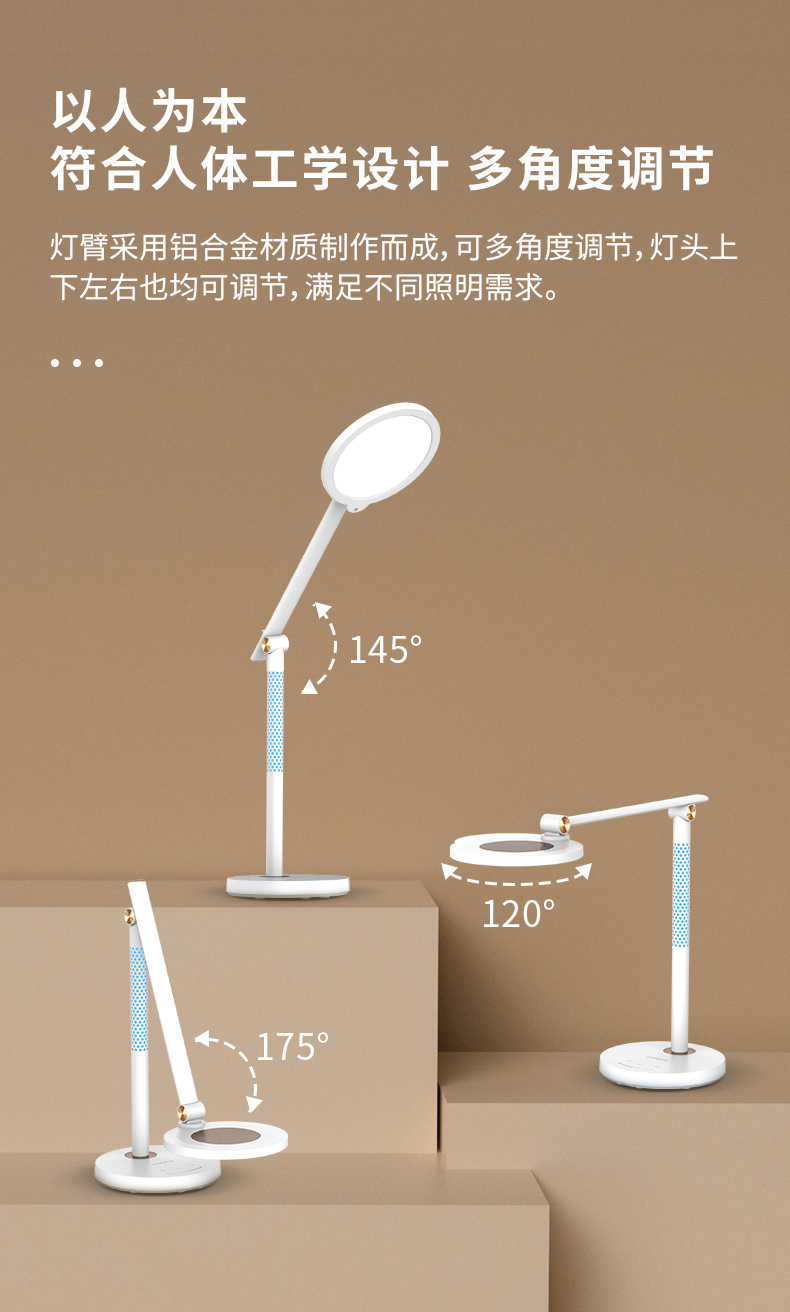 品牌:健康之光型号:LA-T813功率:12W+7.5WLED灯珠:特制健康之光芯片色温:5档色温调节电源线长:1.5米调光方式:触碰调光使用方式:插电使用发光类型:LED侧发光照度:>1650Lux(40cm垂直照射)颜色:白色重量:1.3KG包装尺寸:16*16*31cm材质:金属+塑料