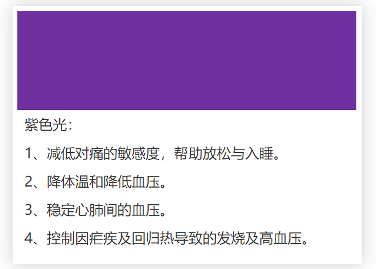 码”“光配方”“光控制”针对人体健康,改善身体及心理状况;另有独家